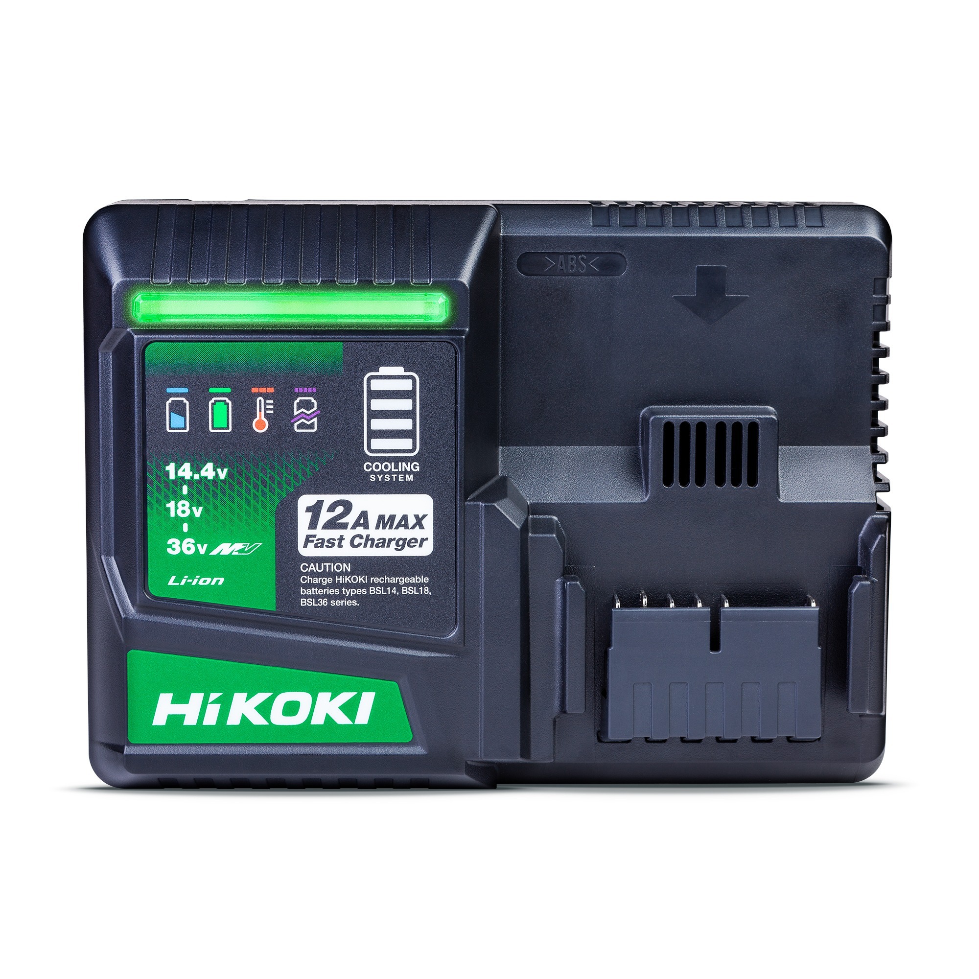 HiKOKI Unleash the new 12Amp Max Fast Charger delivering unparalleled lightening quick charging times with extra safety benefits. UC36YSL2 features the latest in cutting-edge colling systems and 3-way protection including overcharging and overheating technology.
