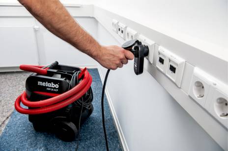 Manual starting of the vacuum cleaner is also possible with the remote button at the coupling bush of the hose