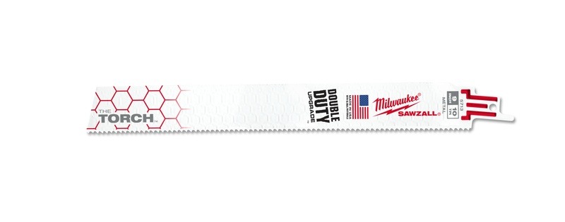 THE TORCH metal-cutting blades with the Double Duty Upgrade feature a tooth form optimized for the longest life and maximum durability. Tough Neck is engineered to protect against tang breakage and delivers the strongest SAWZALL blade tang on the market. Grid Iron features a stamped honeycomb pattern throughout the body of the blade that greatly increases the rigidity of the blade, making it the stiffest metal cutting SAWZALL blade on the market. These blades are ideal for making tough, straight cuts.