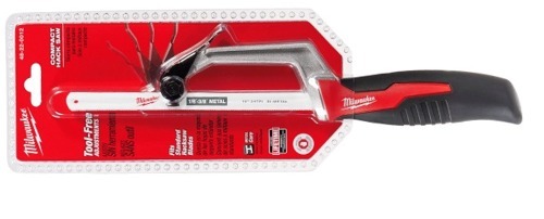 The Milwaukee® Compact Hack Saw features a compact design that is ideal for small cutting applications. A tool free blade change offers quick blade length changes for increased efficiency in the field and a rubber over mold adds comfort for the user. This tool is great for cutting copper tubing, metal bolts and small PVC.