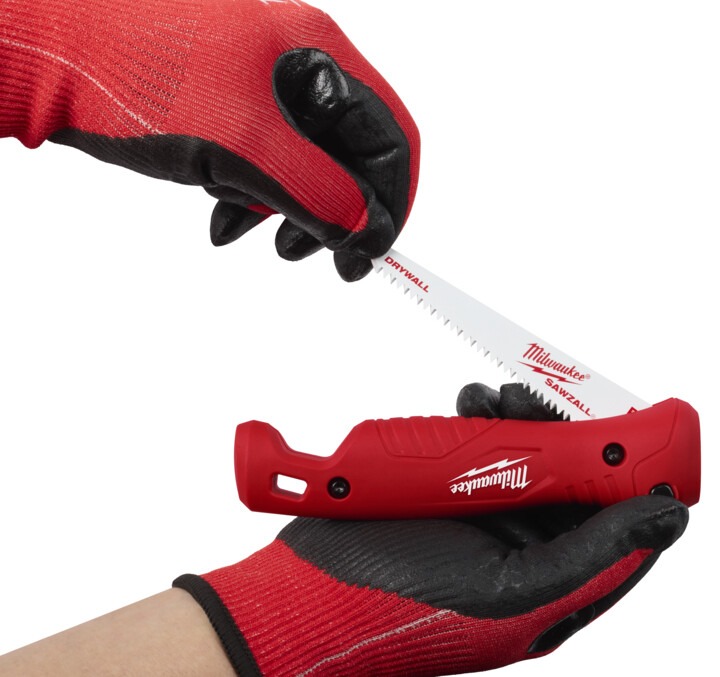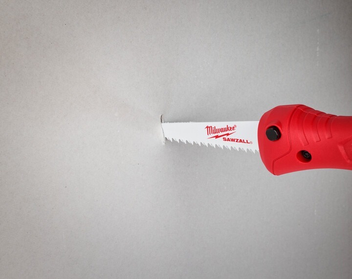 Our Milwaukee® Folding Jab Saw features our new Sawzall Drywall Blade. The 6″ 8TPI Sawzall Drywall Blade features a large piercing tip for easy plunge cuts and fleam ground teeth for smooth cuts. The handle fits all 6″ Sawzall™ blades for quick cutting into multiple materials and the blade will easily fold into the handle to avoid piercing through tool pouches and bags.