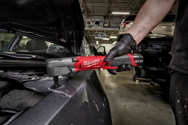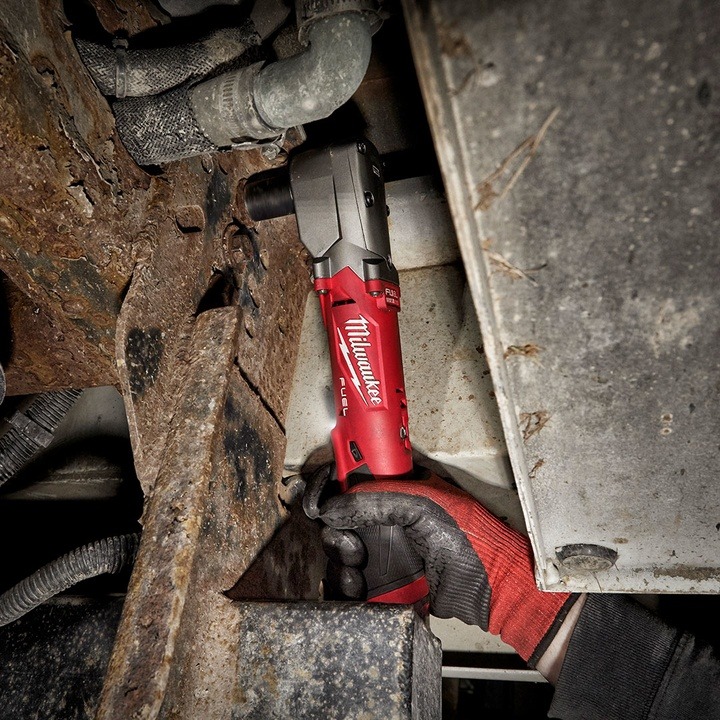 The M12 FUEL™ 1/2″ Right Angle Impact Wrench with Friction Ring is a powerful right angle impact wrench. Users will be able to easily remove stubborn bolts and fasteners with up to 300 Nm of nut-busting torque. This cordless right angle impact wrench also gives user’s maximum access with ultimate control in hard to reach applications. The durable cordless impact wrench easily fits into tight spaces with a profile head of only 56 mm. This allows users to be more productive by decreasing the need for socket extensions often used with pistol-grip impact tools. The 4-Mode DRIVE CONTROL delivers unmatched control in various fastening and bolt removal applications. Modes 1-3 provide RPM and IPM adjustments for maximum precision, while Mode 4 is equipped with Auto Shut-Off in forward and Bolt Removal Mode in reverse. Auto Shut-Off Mode will prevent over-tightening of bolts by applying no more than 20 Nm of torque. Bolt Removal Mode provides more control by drastically slowing down RPMs once the bolt is loosened. The REDLINK PLUS™ Intelligence ensures maximum performance and protection against overloads, over-heating, and over-discharge. This cordless 1/2″ impact wrench is powered by MILWAUKEE® M12™ REDLITHIUM™-ION Battery Packs (not included), which are compatible with all M12™ tools, delivering more work per charge and more work over the life of the pack.