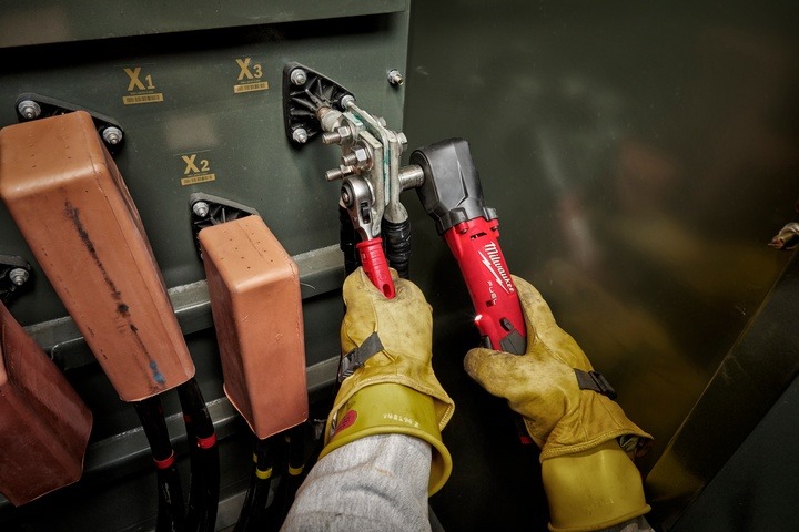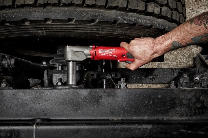 The M12 FUEL™ 3/8″ Right Angle Impact Wrench with Friction Ring is a powerful right angle impact wrench. User’s will be able to easily remove stubborn bolts and fasteners with up to 300 Nm of nut-busting torque. This cordless right angle impact wrench also gives user’s maximum access with ultimate control in hard to reach applications. The durable cordless impact wrench easily fits into tight spaces with a profile head of only 56 mm. This allows users to be more productive by decreasing the need for socket extensions often used with pistol-grip impact tools. The 4-Mode DRIVE CONTROL delivers unmatched control in various fastening and bolt removal applications. Modes 1-3 provide RPM and IPM adjustments for maximum precision, while Mode 4 is equipped with Auto Shut-Off in forward and Bolt Removal Mode in reverse. Auto Shut-Off Mode will prevent over-tightening of bolts by applying no more than 20 Nm of torque. Bolt Removal Mode provides more control by drastically slowing down RPMs once the bolt is loosened. The REDLINK PLUS™ Intelligence ensures maximum performance and protection against overloads, over-heating, and over-discharge. This cordless 3/8″ Impact Wrench is powered by MILWAUKEE® M12™ REDLITHIUM™-ION Battery Packs (not included), which are compatible with all M12™ tools, delivering more work per charge and more work over the life of the pack.