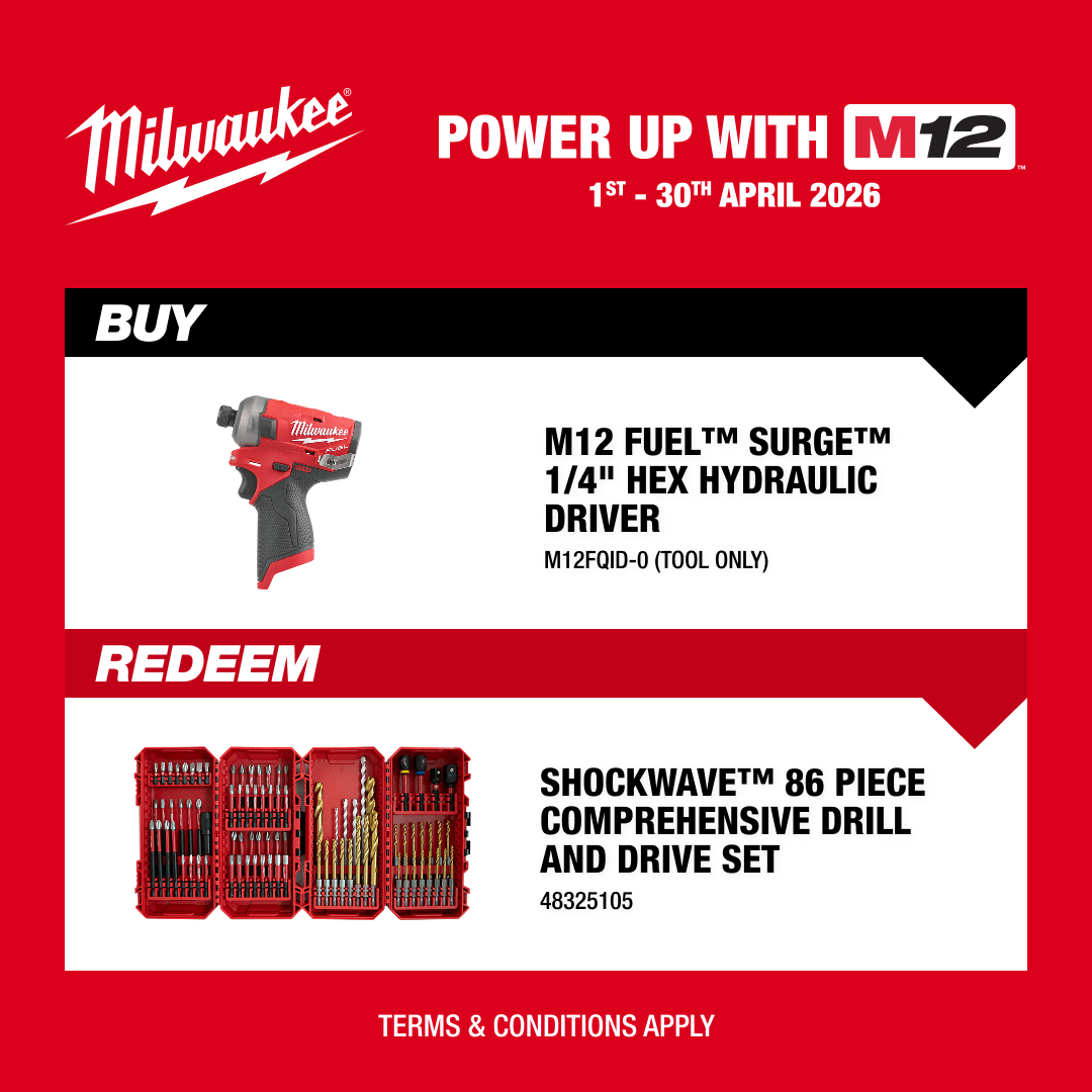 Our M12 FUEL SURGE ¼” Hex Hydraulic Driver is the industry’s first 12-volt hydraulic impact driver. Featuring our FLUID-DRIVE Hydraulic Powertrain, the hydraulic impact will let you experience quiet operation with less vibration for smoother and faster driving speeds compared to standard impacts. The compact size of the tool and battery give you unmatched access in tight spaces and allows for easy transport on a tool belt and easy fitting into your job site tool bag. The POWERSTATE Brushless Motor delivers up to 0-3,200 RPM with constant power output to drive screws faster. Built-in REDLINK PLUS Intelligence is the most advanced electronic system on the market, preventing damage to your tool and battery caused by overloading or overheating. The cordless impact driver is compatible with all MILWAUKEE M12 REDLITHIUM-ION Compact Batteries or Extended Capacity Batteries, providing you with more work per charge and more work over the life of the pack. The impact driver’s 4-Mode DRIVE CONTROL gives you greater control over output speed and power for greater versatility in a wide range of applications. Self-Tapping Screw Mode reduces walking when you are self-tapping screws as well as reduces overdriving, breaking and stripping out screws.