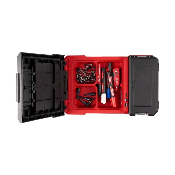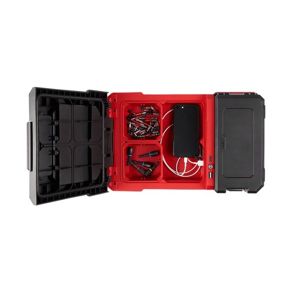 The M12™ PACKOUT™ Area Light provides maximum output in a compact and easy to transport design. Our compact and portable flood light delivers 1,400 lumens of TRUEVIEW™ high definition output and is top stack compatible with our PACKOUT™ Modular Storage System. The light head can rotate 300 degrees horizontally and 180 degrees vertically for complete light head control. With three different modes (high, medium, low), output and runtime can be adjusted depending on the job, with up to 17 hours of runtime on a M12B6. Also included in this light is built-in storage with two storage containers to optimise space and organisation. The PACKOUT™ Light allows you to charge devices with the 2.1AMP USB-A and USB-C ports whiles storing small items inside the storage compartment. Built to withstand the toughest conditions this light is IP54, drop-rated, and covered with a 5-year tool and limited LED warranty.