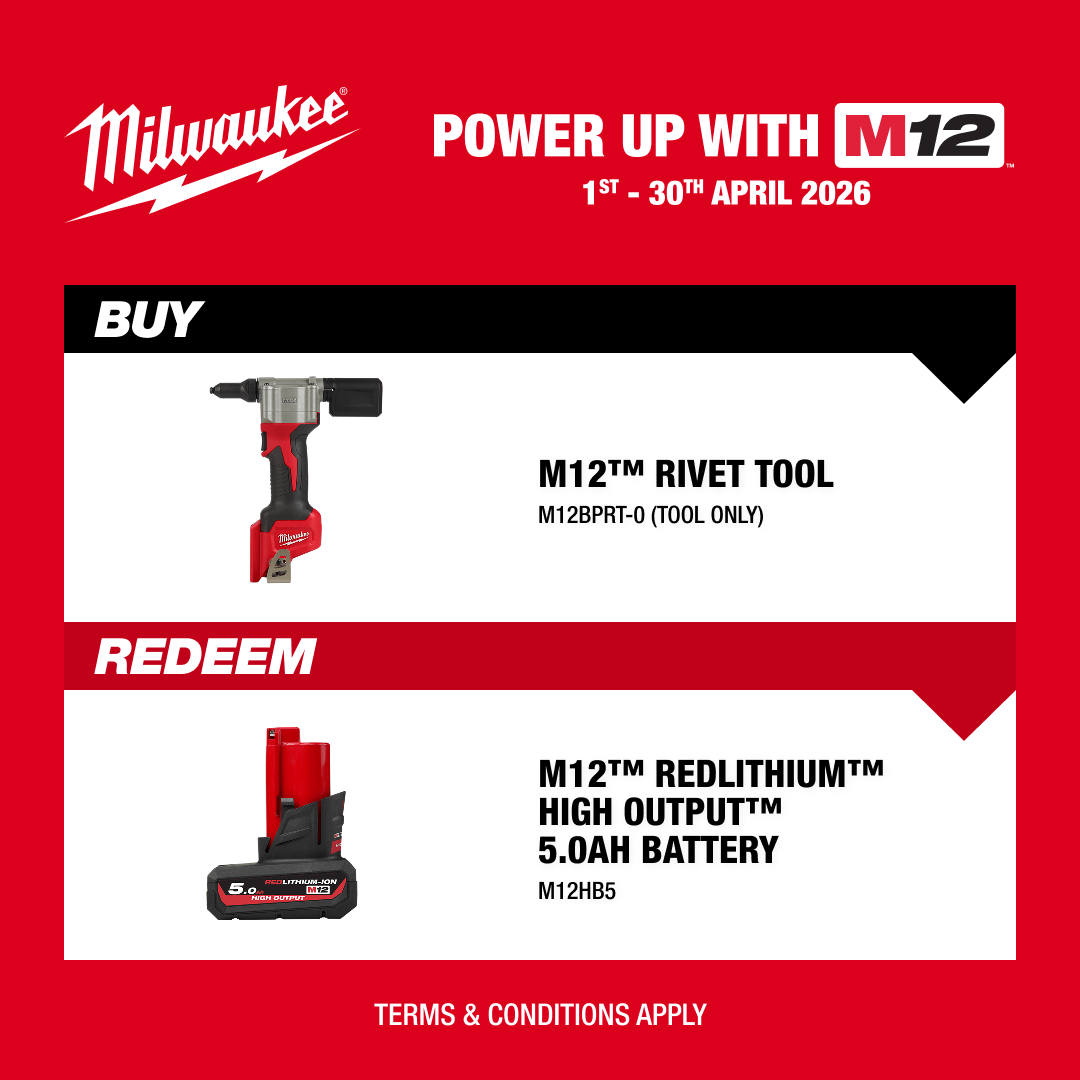 900 1/8″ Steel Rivets per charge using a M12B3 battery (Not Supplied)