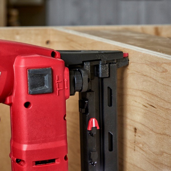 A nitrogen air spring mechanism gives this cordless staple gun the power to consistently sink staples to the proper depth in hard materials, with the ability to adjust to drive staples in soft materials without blowing through.