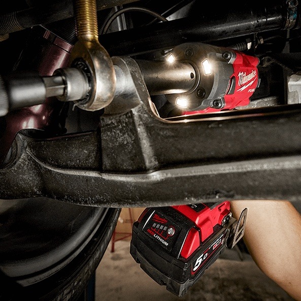The MILWAUKEE® 1/2″ Compact Impact Wrench with Friction Ring has tri-LEDs that surround the anvil to deliver the user brighter light with fewer shadows.