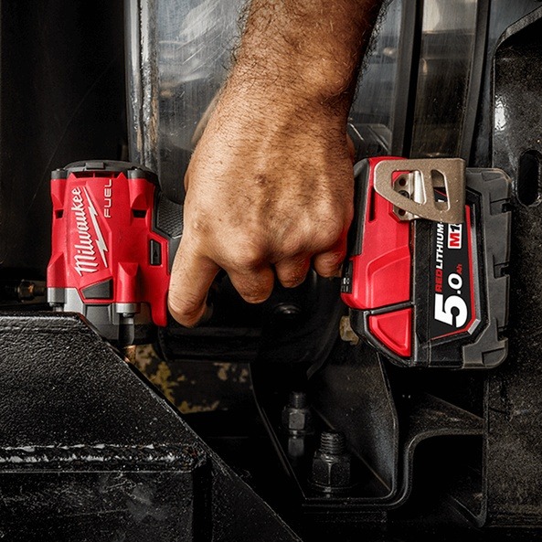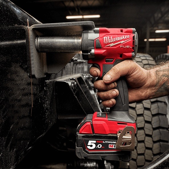 The M18 FUEL™ 1/2″ Super Compact Impact Wrench with Friction Ring delivers maximum access in tight spaces as it’s only 124.5mm Length, up to 339 Nm of nut-busting torque, and maximum workspace visibility.