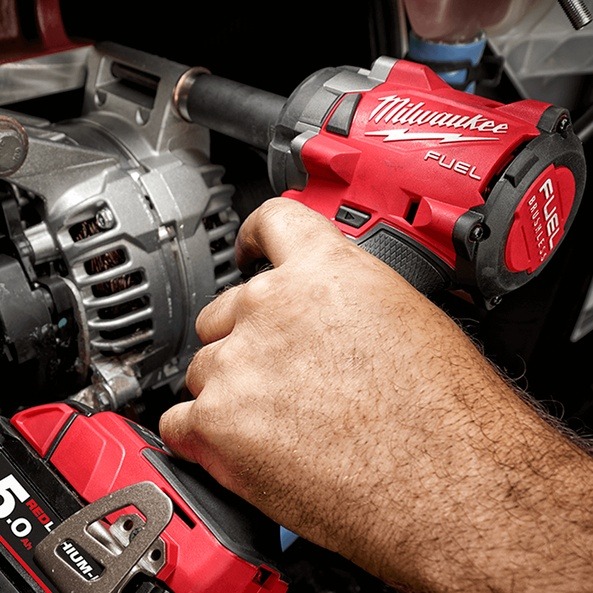 The MILWAUKEE® 1/2″ Compact Impact Wrench with Pin Detent has tri-LEDs that surround the anvil to deliver the user brighter light with fewer shadows.