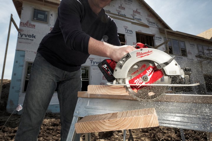 M18™ Brushless 184mm Circular Saw delivers maximum power in a brushless motor while providing more run-time. The Milwaukee® built motor and REDLINK™ electronics provide more efficient power delivery, more power and fewer trips to the charger. With 5,000 RPM the M18BLCS66-0 provides smooth cutting, and at only 3.3kg, it is lighter than most corded saws. The 184mm Brushless Circular Saw also features an integrated rafter hook, magnesium guards, an aluminum shoe and LED light.