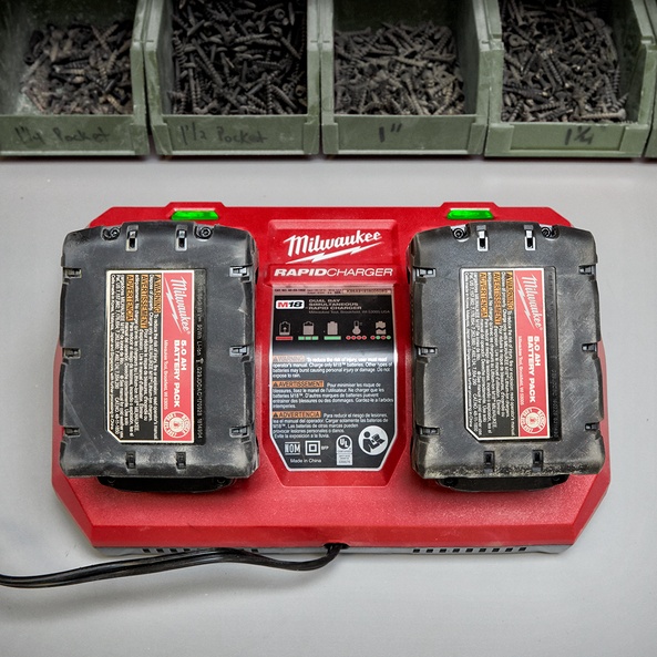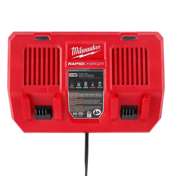 The M18™ Dual Bay Simultaneous Rapid Charger is capable of charging two batteries at once, and faster than standard sequential chargers.