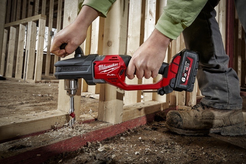 The M18 FUEL™ HOLE HAWG™ Right Angle Drill from MILWAUKEE™ drills faster than the original HOLE HAWG™, delivers over 220 holes per charge on a M18HB6, and is lighter weight than its corded predecessor.
