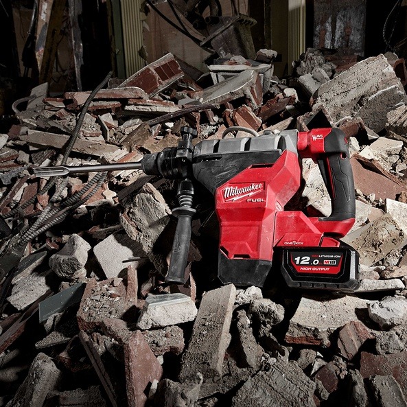 The M18 FUEL® 44mm SDS Max Rotary Hammer Bare Tool w/ ONE-KEY™ is designed for the professional user, allowing ultimate power, control, safety and productivity. The POWERSTATE™ Brushless Motor delivers 11J of impact energy that meets and rivals that of corded competition. REDLINK™ PLUS intelligence tool technology ensures maximum rotary drill performance and protects it from overload, overheating, and over discharge. Power through the toughest materials with the M18™ REDLITHIUM®-ION High Output 12.0Ah Battery, which delivers unmatched run-time in all applications when used with the rotary hammer drill. Our full feature hammer delivers maximum control and enhanced safety with the Electronic Clutch, which will stop rotating at 45 degrees when the tool gets bound up. This feature ensures safer work and more control while on the job. The cordless rotary hammer is compatible with ONE KEY™, wirelessly connecting to your smartphone to track and manage the tool’s performance and location. ONE-KEY™ integrated tool tracking gives you full visibility over how and where your tools are being used across your network of jobs and users.