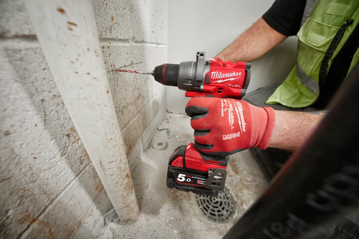 The M18 FUEL™ 13 mm Hammer Drill Driver delivers the capability to drill large holes at high speed into the densest materials. The cordless drill is a compact design and solution, featuring Auto Stop™ Control Mode for Enhanced Safety. The POWERSTATE™ Brushless motor delivers the most power under load to complete 2-9/16″ Self-Feed holes in dense woods for increased productivity.