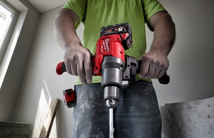 The M18 FUEL® Mud Mixer with 180° handle delivers the performance and durability to fully replace corded mixers. With the POWERSTATE™ Brushless motor it has the power to mix heavy compounds, such as concrete and mortar. Using our REDLINK™ intelligence the variable speed dial, the variable speed trigger and the lock on button combine to give the user ultimate control for a consistent mix and cleaner working environment. With the M18 REDLITHIUM®-ION battery the user can mix up to 15 buckets on one 5.0Ah battery. The 180° adjustable handle is designed to allow every user to optimise the handle position for their comfort. This Milwaukee cordless solution increases productivity by eliminating the need for cords and allows the user to mix the material at the workspace where it is being applied.