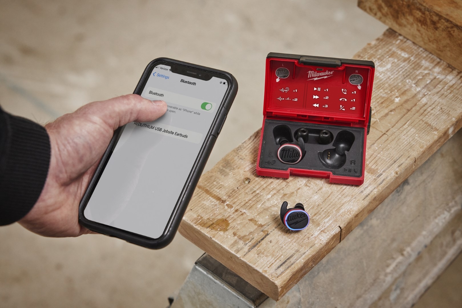 With up to 10 hours of runtime on a single charge, these ear buds deliver all-day runtime. The REDLITHIUM™ USB case battery provides up to 70 hours of runtime using multiple in-case charges. Built to survive on the jobsite, this audio solution is water, dust, & impact resistant. Designed for on-the-job use, passive hearing protection is provided by silicone and foam ear tips. Our ear buds are kitted with multiple interchangeable ear tips and wings, for a secure fit.