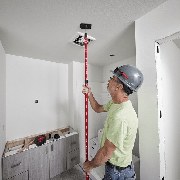Part of our extensive laser accessory range, the 3,657mm (12′) Telescoping Laser Pole is designed to provide a fast set-up and stable laser line. The Telescopic Laser Pole features threaded and telescoping sections for easy set-up and a secure fitment in interior environments. The quick-release laser pole clamp and reference marks allow users to effortlessly set lasers at the correct elevation, and the non-marring swivel top plate leaves no scuff marks. The lightweight, durable aluminium body ensures it will survive the jobsite, and the storage bag keeps it protected during transport. The MILWAUKEE® Telescoping Laser Pole is backed by a three-year limited warranty.