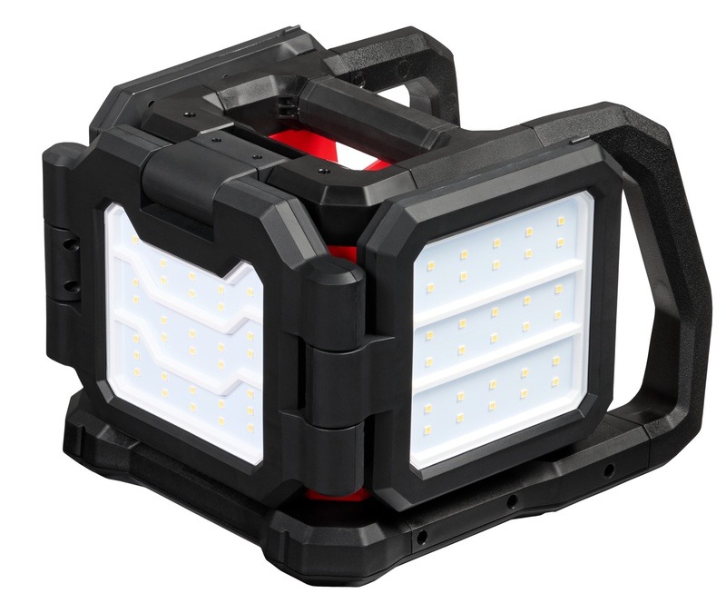 Our M18™ Three Panel Flood Light delivers a high-performing 4,500 Lumens of flood and area lighting in a compact and portable size. The light has three folding panels that provide optimal lighting coverage, offering various brightness modes and individual light head power options for any jobsite need.
