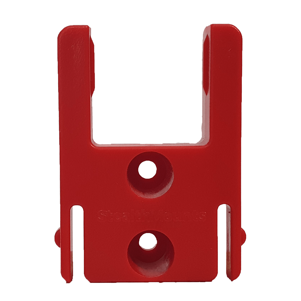 StealthMounts Tool Mounts for Milwaukee M18 cordless tools keep your tools organised and right where you need them. Tools are held securely using our Snap-Fit system, simply slide you tool onto the holder until you hear a click. Made in Great Britain our Milwaukee M18 Tool Mounts are made using extremely durable injection moulded ABS plastic with countersunk screw holes to allow for secure mounting. Ideal for keeping track of you tools and staying organised. They can be mounted at any distance from one another and in small spaces for maximum workshop efficiency. Rated for use in your workshop and under shelves. They can be used in tool trailers or in your work vehicles with due care. Easily release your tool by pulling it off the mount. Available to match your colour coded Milwaukee platform.